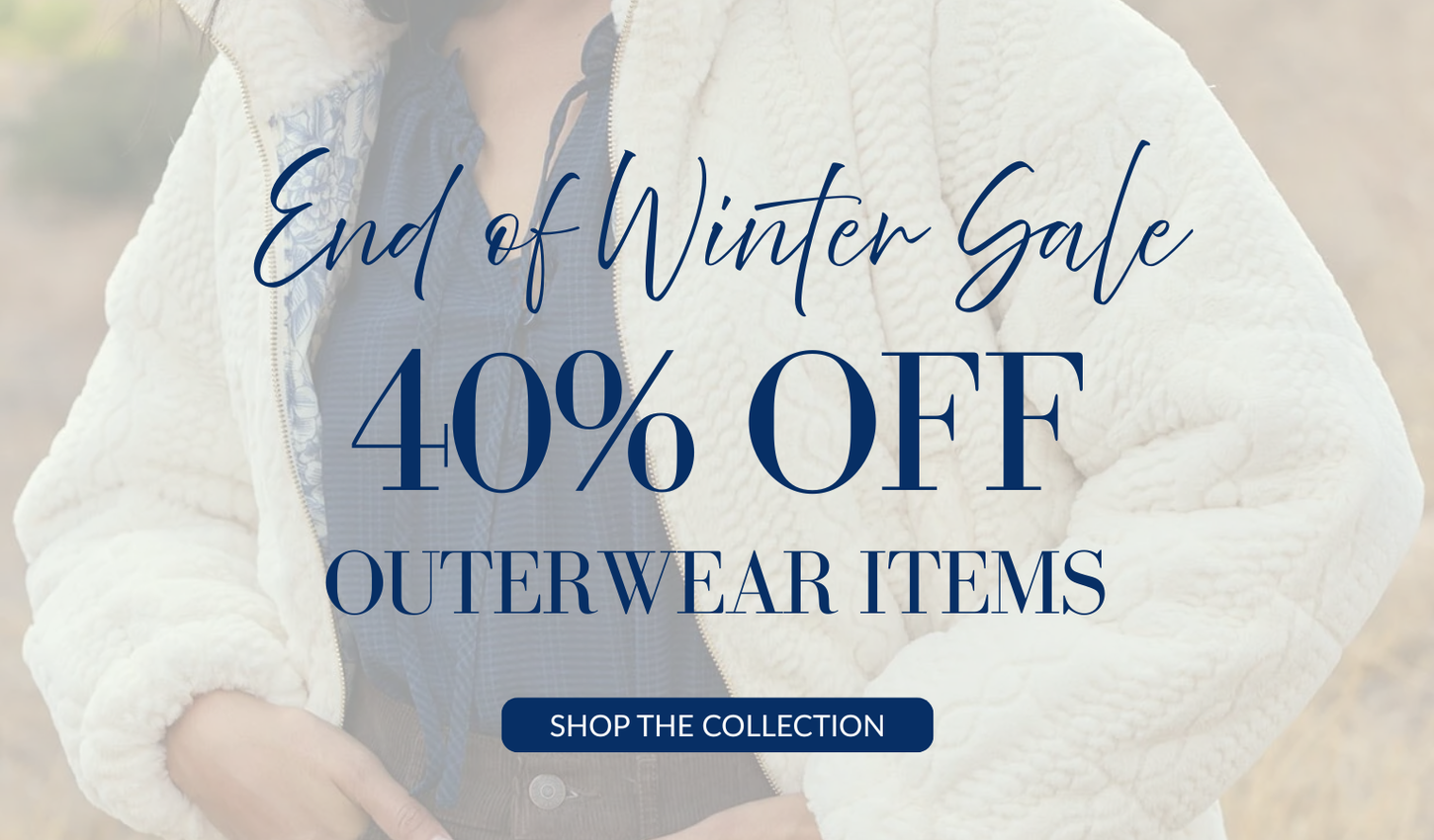Don't miss out on our last chance to shop the end of winter sale! Enjoy 40% off on all your favorite items. Hurry, this offer won't last long! Grab your deals before it's too late!